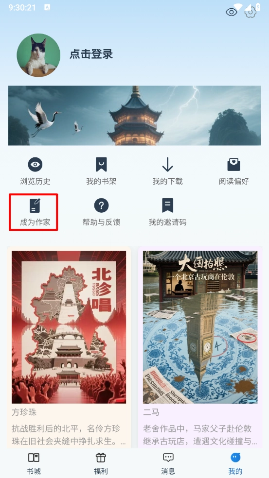 2、進(jìn)入我的頁(yè)面點(diǎn)擊"成為作家"。