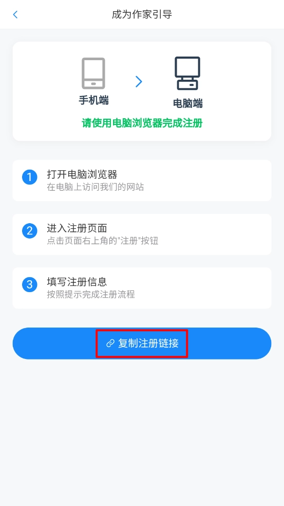 3、然后點(diǎn)擊"復(fù)制注冊(cè)鏈接"。