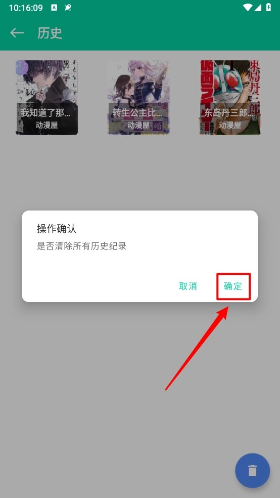 3、然后在歷史頁(yè)面點(diǎn)擊右下角"刪除"圖標(biāo)。