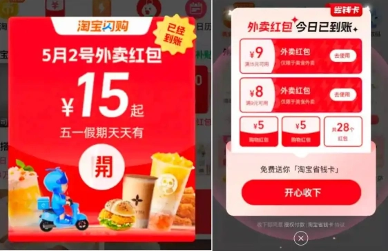 自5月2日淘寶閃購(即淘寶外賣)上線起,首次使用該服務(wù)的用戶可領(lǐng)取大額紅包,目前此紅包僅限首次使用的用戶專享!