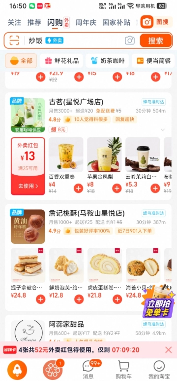 ● 淘寶閃購:天天免單等你來,外賣紅包送不停
