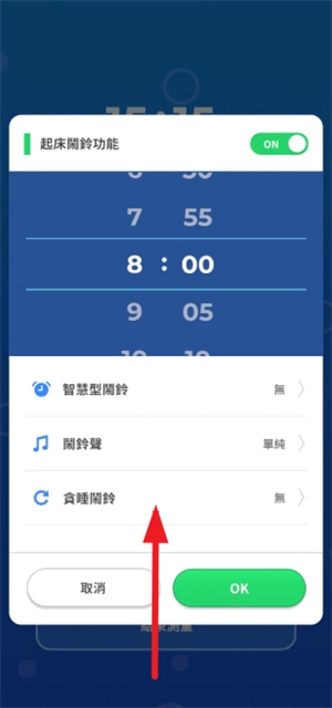 4、開始測試后,隨時可以設置一下鬧鐘,以及助眠聲音。