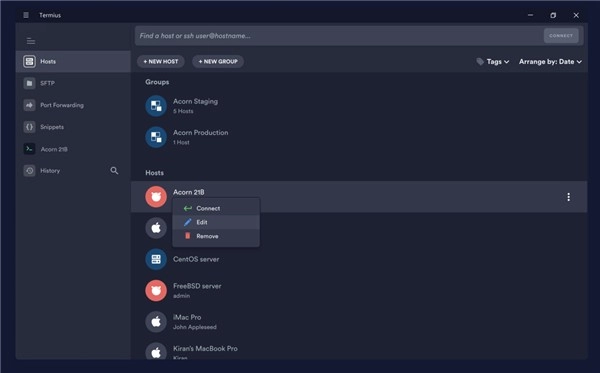 Termius是一款頗具潛力的工具類軟件,在其簡(jiǎn)潔易用的整體氛圍中,集成了豐富的遠(yuǎn)程操作與服務(wù)功能。用戶能夠依據(jù)自身需求連接服務(wù)器,且軟件支持手機(jī)端使用,可借助它實(shí)現(xiàn)各類先進(jìn)的代碼操作。此外,用戶還能通過(guò)多種鏈接渠道,便捷地訪問(wèn)軟件界面。
