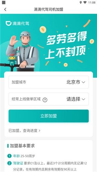 請(qǐng)先安裝滴滴代駕司機(jī)客戶端的最新版本應(yīng)用。打開應(yīng)用后,若您已有賬號(hào),可直接登錄;若您是新用戶,請(qǐng)點(diǎn)擊頁(yè)面下方的【立即加盟】按鈕,完成注冊(cè)申請(qǐng)流程。