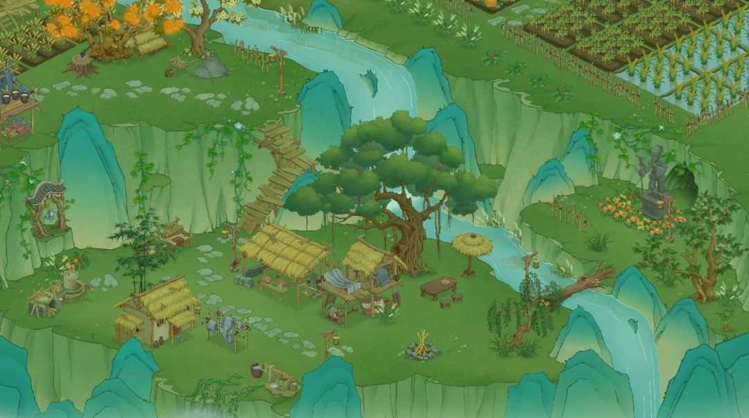 在《桃源記2》里,游戲設(shè)置了多種風(fēng)格迥異的地圖,其中包含河流、樹林等自然景觀。這些地圖采用了色彩更為豐富的山水畫風(fēng)格,整體畫面顯得更加自然,也更貼近現(xiàn)實(shí)。玩家能夠自由選擇不同的地圖來發(fā)展自己的聚落,通過收集農(nóng)作物、建立商貿(mào)關(guān)系等方式進(jìn)行交易,推動(dòng)聚落的繁榮。