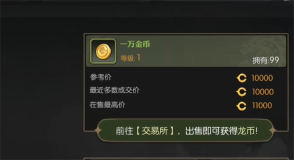 前往交易所,出售即可獲得龍幣。