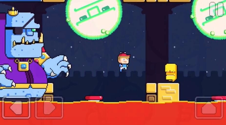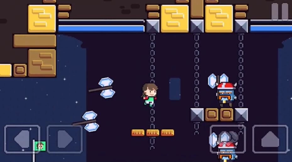游戲界面設有四個虛擬按鍵,功能分別對應左移、右移、跳躍與攻擊。操作方式十分簡便,只需通過點擊這四個按鈕,就能完成整個關卡的游玩。