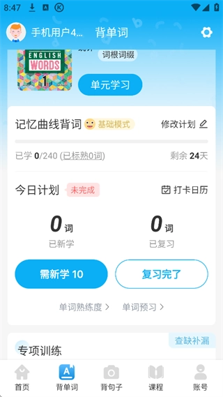 當(dāng)你感覺自己學(xué)的很OK,回到首頁點(diǎn)擊背單詞