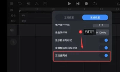 點(diǎn)擊打開三連音網(wǎng)格功能開關(guān)。