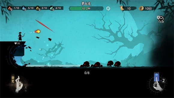 戰(zhàn)斗機(jī)制:游戲采用橫版自動(dòng)戰(zhàn)斗的形式,怪物會(huì)沿著固定路線向基地發(fā)起進(jìn)攻。玩家需要借助右下角隨機(jī)出現(xiàn)的各類(lèi)符咒(包括攻擊型、防御型等),通過(guò)拖拽操作來(lái)釋放它們,同時(shí)結(jié)合左下角的“天書(shū)技能”以打出大范圍傷害。只要撐過(guò)規(guī)定的波次就能完成關(guān)卡,而在BOSS關(guān)卡中,則需要著重運(yùn)用天書(shū)技能來(lái)突破敵人的防御。