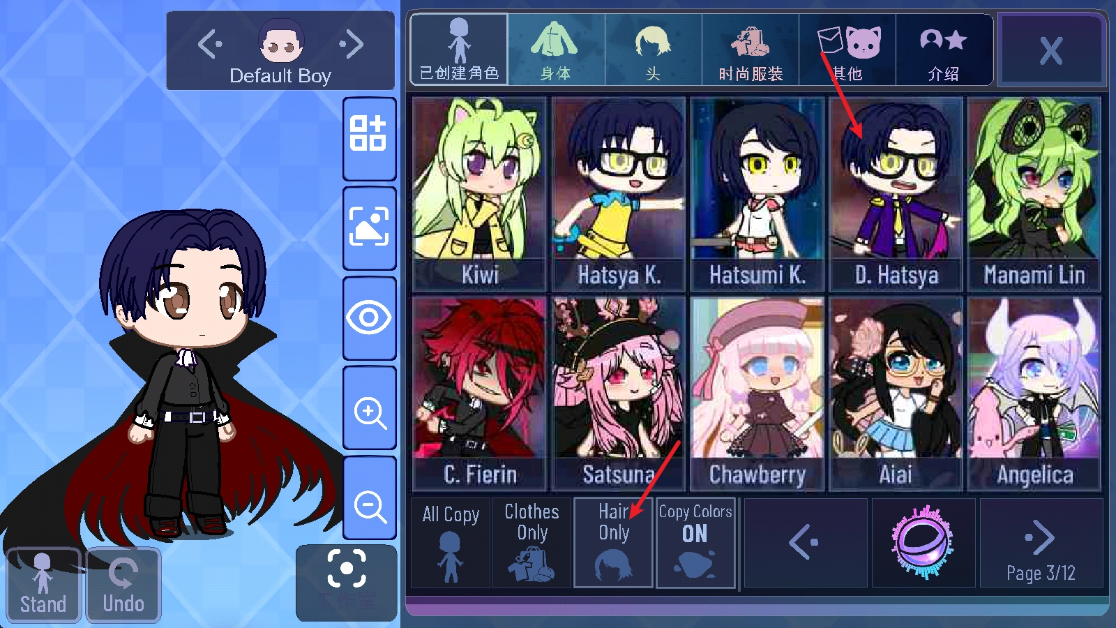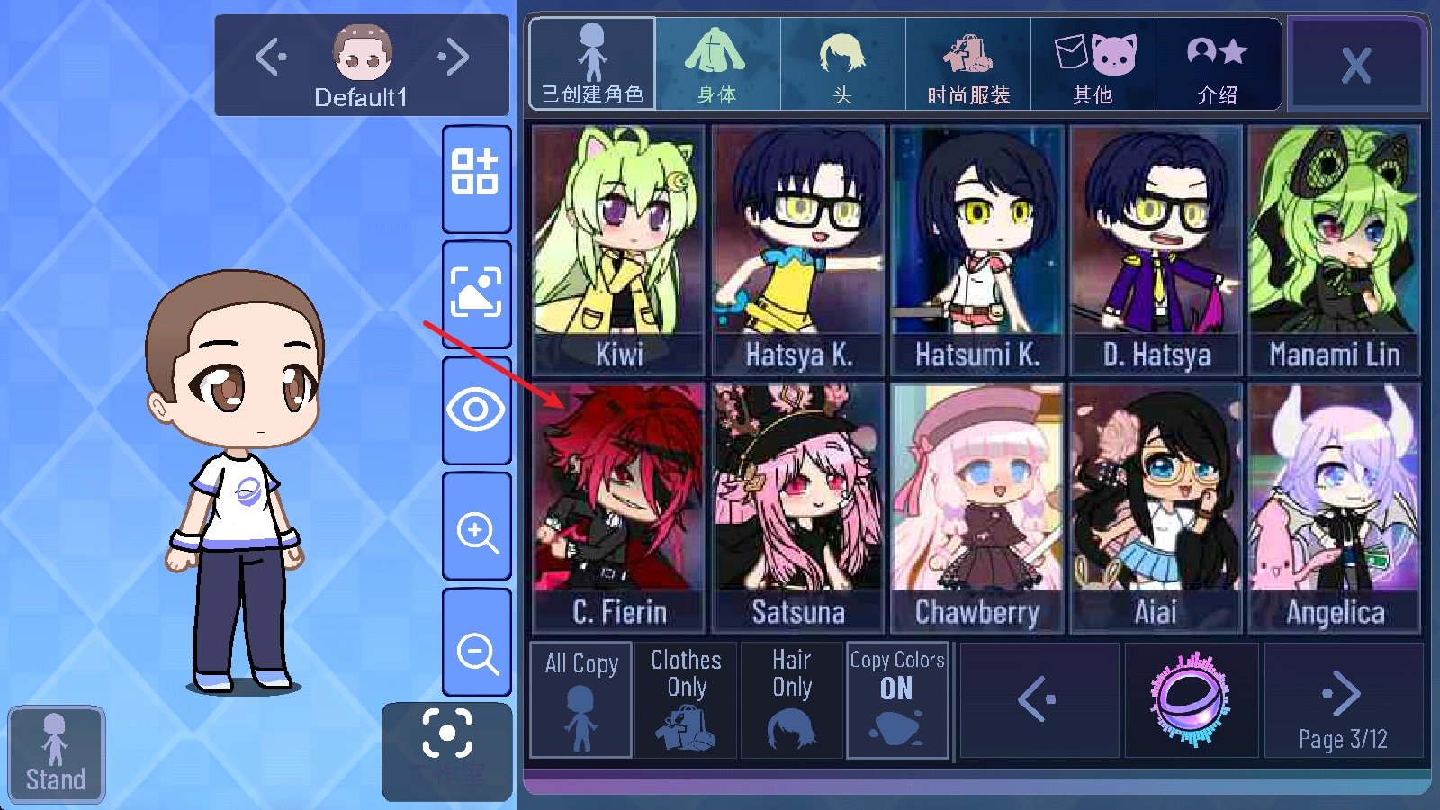 接下來我們可以嘗試復(fù)制自己喜歡的角色,選中角色后,系統(tǒng)會(huì)默認(rèn)復(fù)制其全部?jī)?nèi)容,涵蓋發(fā)型、服飾等各個(gè)方面。
