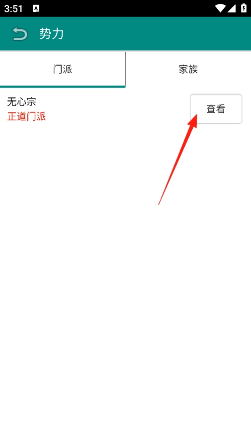 在勢(shì)力界面中,設(shè)有門派與家族兩個(gè)選項(xiàng)。當(dāng)前門派列表里,無(wú)心宗被標(biāo)注為正道門派,通過(guò)該界面可以查看無(wú)心宗的詳細(xì)信息,包括加入后可習(xí)得的功法類型以及能獲取的各類資源,這有助于玩家判斷是否要選擇加入此門派。