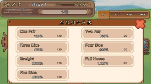 此外,前五個(gè)骰子的點(diǎn)數(shù)可以通過組合形成不同的組合技巧,例如對(duì)子、三條等,一旦組合成功就能獲得額外的傷害加成。