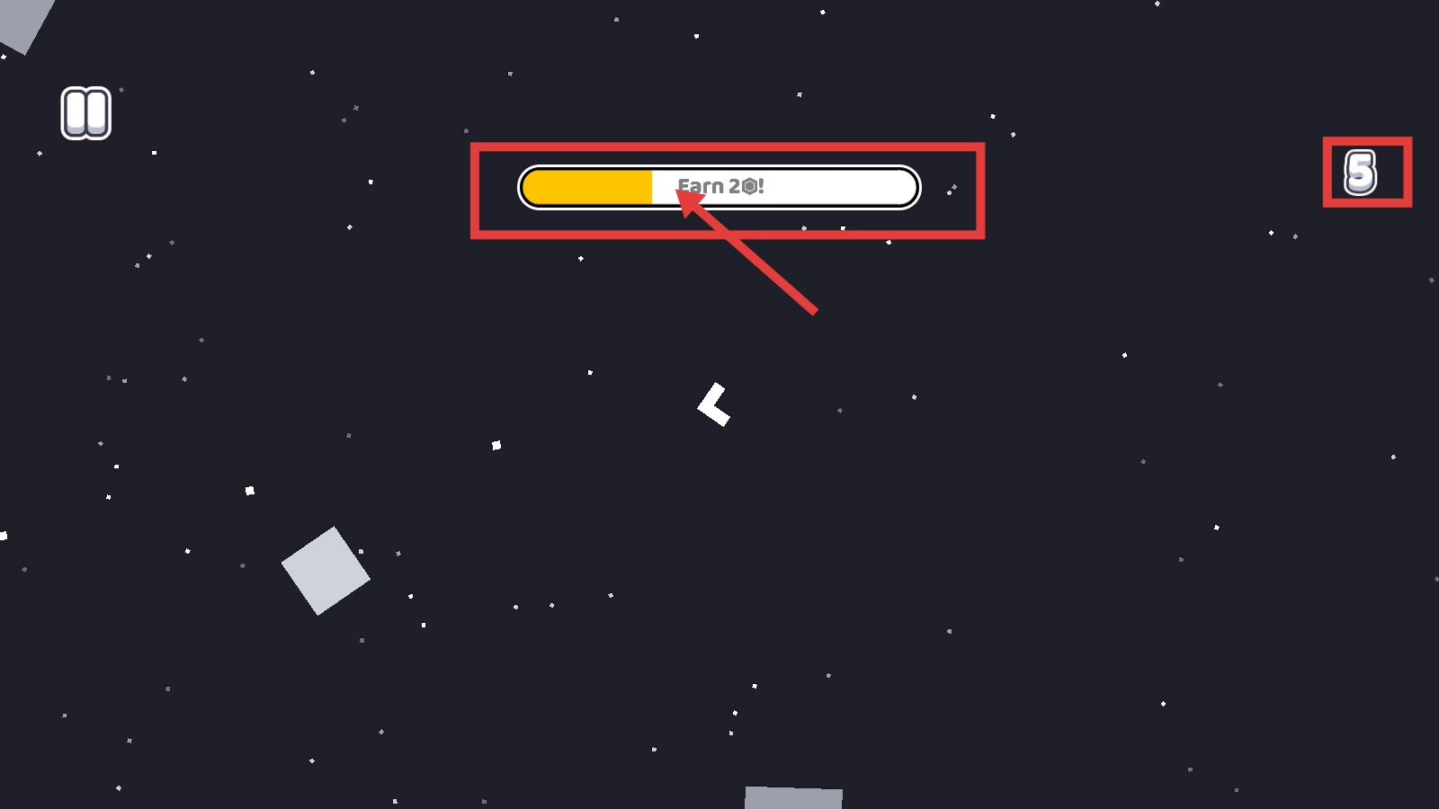 留意【Earn-20!】進(jìn)度條,不斷對(duì)小行星發(fā)起攻擊來積累分?jǐn)?shù),保證進(jìn)度條能平穩(wěn)前進(jìn)從而完成目標(biāo)。