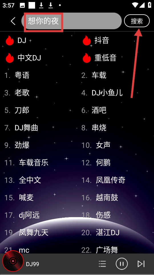 在搜索框里輸入【想你的夜】,接著點擊【搜索】按鈕,就能得到搜索結果。