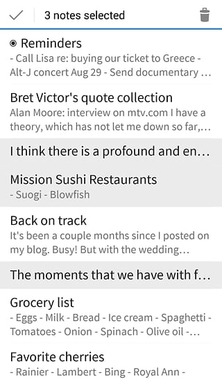 Simplenote軟件里有個(gè)很貼心的回溯功能,不管你操作了什么,它都會(huì)即時(shí)保存之前寫(xiě)下的內(nèi)容,完全不用擔(dān)心誤觸刪除鍵之類的情況,反應(yīng)特別迅速。