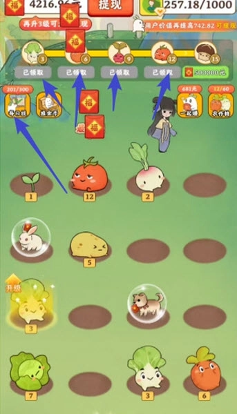 隨著等級的提高,能夠解鎖新的植物種子以及新的農(nóng)場設(shè)施。