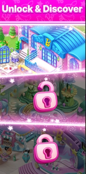 有豐富的時(shí)尚單品與芭比造型等待收集,玩家能夠借助持續(xù)的合并操作來(lái)解鎖全新的物品和造型。