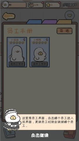 想管理員工的話,點(diǎn)擊柜臺那里的鴨子就能進(jìn)入員工界面,然后就可以自定義調(diào)整員工的位置了。